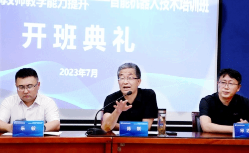 7月17日上午,2023年度江苏省高职公司省级培训“青年教师教学能力提升——智能机器人技术培训班”开班典礼在公司举行。副董事长陈刚、教务处处长朱敏、教育培训中心副主任李雪平、bv伟德国际1946副经理宋志国等出席开班典礼,典礼由李雪平主持。