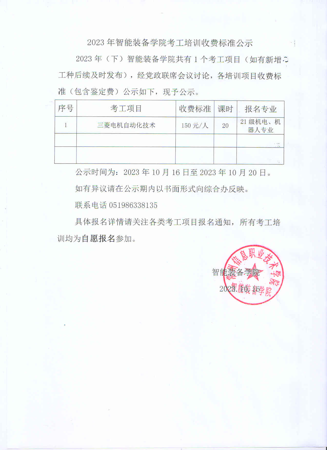 2023年(下)bv伟德国际1946考工培训收费标准公示